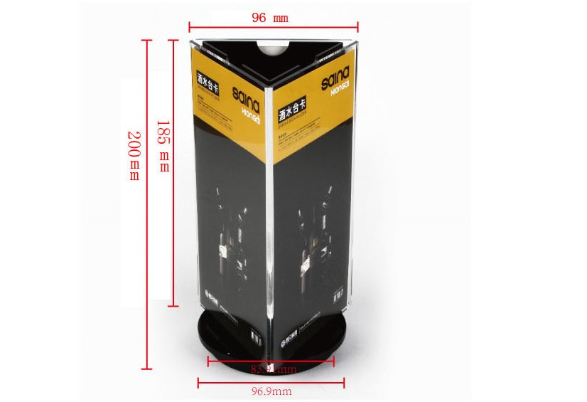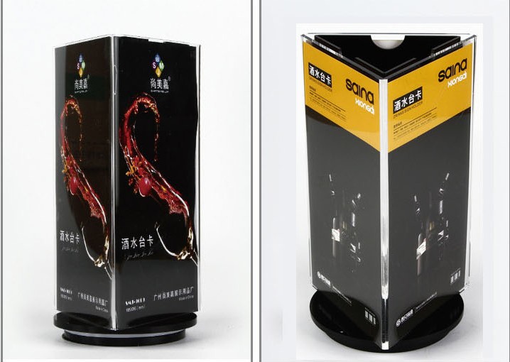 適用范圍:亞克力三面旋轉臺卡適用于餐廳、酒吧、KTV會所、銀行、辦公室、賣場、展會等!