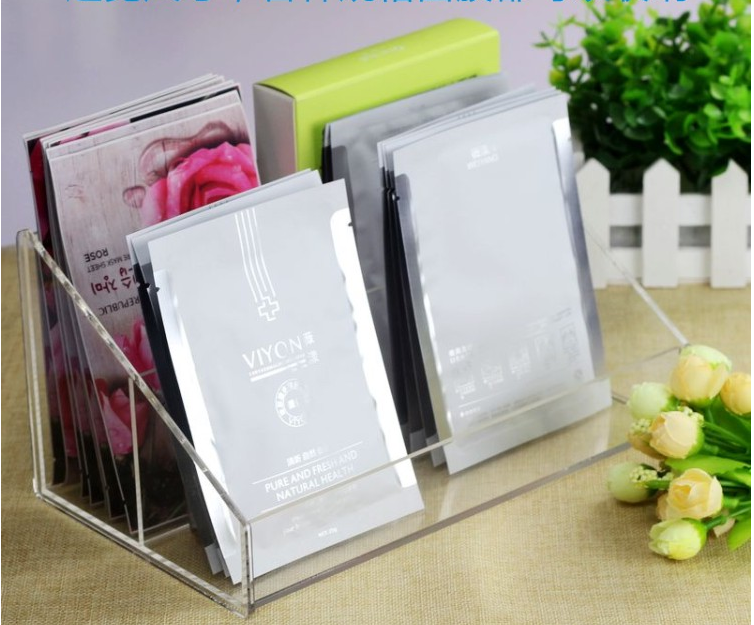 面膜展示架每層格子的底部的口徑是3.4厘米,上部口徑是3.7厘米,化妝品展示架兩邊是帶有保護(hù)膜的,
